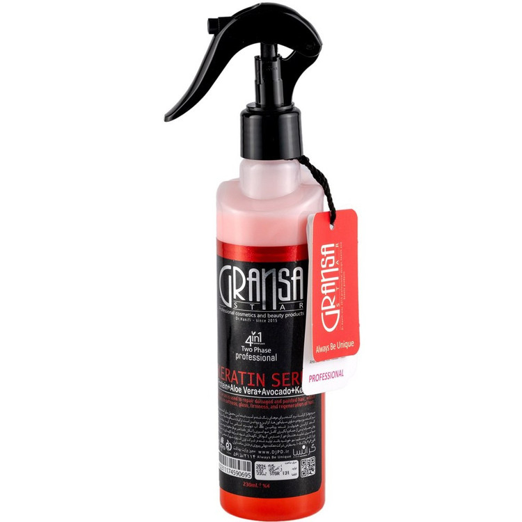 کراتین سرم گرانسا تهیه شده از مرغوب ترین مواد اولیه دنیا هرگز موهای شما را چرب نمیکند. همه آنچه را که موهای رنگ شده و کراتینه شما برای حالت پذیری و ایمنی در برابر لوازم حرارتی استایل مو نیاز دارد را در اختیار شما قرار می دهد. این محصول سرشار از عصاره های مفید و ویتامین بوده و یک سپر کراتینه و حرارتی مناسب را برای موهای ارزشمند و زیبای شما خلق می کند. تا جنس، توان، ضخامت و سلامت موهای رنگ شده شما تا بالاترین حد امکان حفظ گردد و آسیب ها وارده به مرور ترمیم گردند.