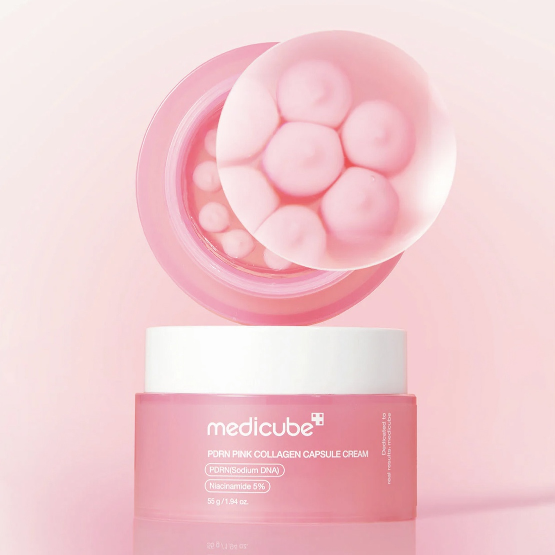 کرم کپسولی کلاژن و PDRN مدیکیوب (Medicube PDRN Pink Collagen Capsule Cream) یک مرطوبکننده پیشرفته است که با ترکیب کپسولهای صورتی کلاژن و ژل شفاف، به بهبود خاصیت ارتجاعی پوست و افزایش درخشندگی آن کمک میکند. این کرم بافتی سبک و غیرچسبنده دارد که بهسرعت جذب پوست میشود و احساس سنگینی ایجاد نمیکند.