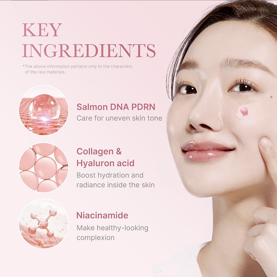 افزایش استحکام و سفتی پوست: حاوی PDRN (پلیدئوکسیریبونوکلئوتید) استخراجشده از DNA ماهی سالمون که به بازسازی سلولی و بهبود ساختار پوست کمک میکند.