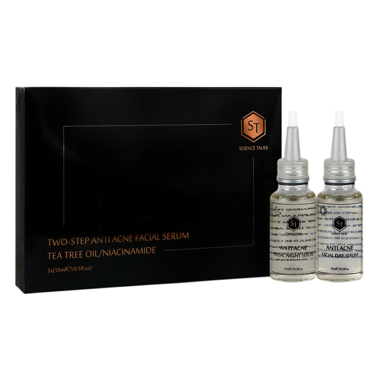 سرم ضد جوش دو مرحله ای ساینس تاکس شامل دو سرم مجزا برای استفاده روز و شب است که بهصورت هدفمند به درمان جوش، کاهش التهاب و پیشگیری از لکههای قهوهای کمک میکند. سرم روز حاوی نیاسینآمید، کافئین و زینک پی سی ای است و با کاهش التهاب و روشنکنندگی پوست، ظاهر سالم و شفاف به آن میبخشد.